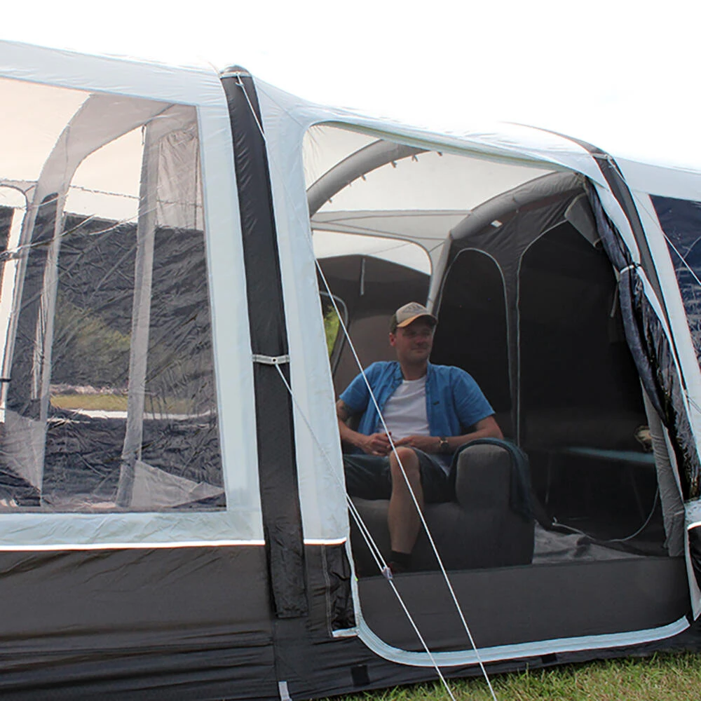 This award winning 6 person, 3 Zone model air tent in the Airedale Range with additional bedroom side extension has quickly become a firm favourite amost the discerning family.